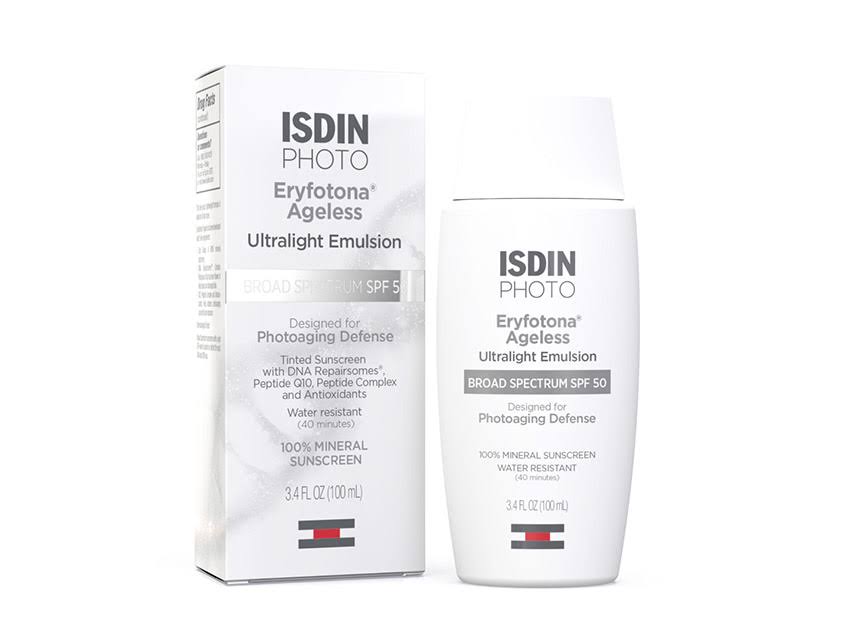 Protect, repair, and correct with Eryfotona Ageless, an ultralight tinted sunscreen with zinc oxide which helps fight the signs of photoaging. Its innovative formula uses 100% mineral SPF 50 sunscreen, an innovative blend of peptides, antioxidants, and DNA Repairsomes® to repair existing sun damage and reduce the appearance of fine lines and wrinkles.